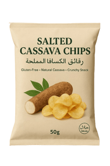 “Salted Cassava Chips are a crispy and flavorful snack made from carefully sliced cassava, lightly salted to bring out their natural taste. A traditional favorite with a modern twist, these chips offer a crunchy, wholesome, and satisfying snack experience for all ages. Perfect for sharing, enjoying on the go, or pairing with your favorite drinks.”